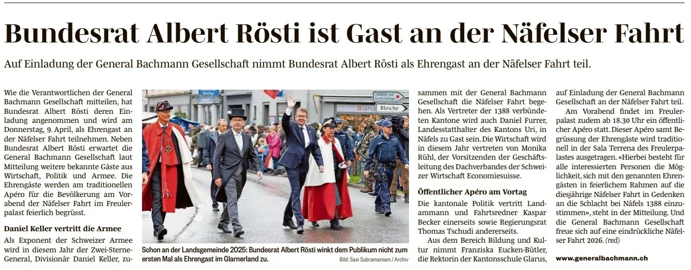 Südostschweiz, 31.03.2026, Voranzeige Näfelser Fahrt 2026
